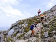 ) Amikor közelítettünk a hegycsúcshoz (6. kép) már eléggé sziklás talaj volt alattunk és láttuk, hogy hamarosan felérünk a felhőkig. Viszont ami azon a részen várt arra nem számítottam. Az addig viszonylag szélcsendes, fényes időjárás átváltott egyik pillanatról a másikra tejfehér köddé és olyan óriási erejű szél próbált fel- fel lökni amilyet én még ezidáig soha nem tapasztaltam. Lehetőség sem volt másra figyelni, mint a lábunk alá, hogy ne essünk el egy-egy kiálló sziklán. Ahogy haladtunk fentebb egyre fokozódott mind a szél, mind a köd és volt olyan szakasz, ahol annak érdekében, hogy ne tudjon fellőkni gyakorlatilag négykézláb mentem néhány métert. Ezt ha én előre tudom, nem kizárt, hogy megfutamodok, viszont ott abban a pillanatban (valószínűleg a sok adrenalin hatására is) olyan hihetetlenül élveztem, hogy nem tudom szavakba önteni. Csodálatos élmény volt. Amikor elkezdtünk lefelé menni egyre kezdett feloszlani a köd és a szél sem ért minket, mert már a hegy megvédett. A hegy oldalán egy sziklaösvényen vezetett tovább az utunk (10-11 kép) ahol eléggé kellett nézni ismét, hogy hova lépünk, nehogy lecsússzunk a hegyoldalon, mert a sziklák nagyon csúszósak voltak. Egyszercsak megláttam, hogy egy másik futó ül egy kövön és nem megy tobább. Először arra gondoltam, talán elcsúszott és beütötte magát, de amikor megkérdeztem jól van- e, csak elkezdett sírni, hogy ő nemtud felállni , mert annyira fél, pedig ő egy bátor ember, de most nagyon fél és nem tud lenézni sem. Abban a pillanatban eszembe jutott mikor egy kilátóban én jártam ugyanígy néhány évvel ezelőtt és borzasztóan megsajnáltam. Próbáltam neki segíteni azzal, hogy kintebb álltam a sziklákon, hogy ne lásson le és megfogtam a kezét, hogy akkor majd én segítek neki. Nem is kellett felálljon, mert láthatóan nagyobb biztonságban érezte magát attól, hogy kapaszkodni tudott a sziklákban, ezért úgy tettük meg azt a 400m 50perc alatt, hogy ő néha sírt, végig kapaszkodott a sziklákba én pedig takartam előle a kilátást és fogtam a kezét, hogy ne féljen. Mikor végig értünk ezen a szakaszon már semmi másra nem tudtam gondolni, csak erre. Olyan mérhetetlenül sokat adott nekem ez a verseny, mind az óriási energiákkal amik ezen a hegyen működnek, mind a tudattal, hogy segíteni tudtam valakinek, aki végig az őrangyalának hívott és mindvégig a hála csillogott a szemében. Kicsit még félelmetes is számomra ez a sok dolog ami akkor történt és talán még nem is sikerült mindent feldolgoznom. A lefelé vezető sziklás úton másra nem is tudtam gondolni, csak, hogy mennyire hálás vagyok azért, hogy itt lehettem és ezt megélhettem, a természet erejét ami végig megnyílvánult amikor az apró kis foltoknak látszó embereket láttam a hegyen, milyen hatalmas erő is a hegy, amikor a felhőtől nem láttam 1 méternél tovább és csak a Jó Istenre tudtam bízni magam, hogy majd Ő vigyáz rám, amikor a szél úgy döntött, hogy útban vagyok neki és odébb tesz, hogy segíthettem egy másik embernek úgy, hogy ezt most valamiért teljesen másjellegű segítségnek éreztem, mint amikor útbaigazítok valakit az utcán, mert neki ott konkrétan halálfélelme volt, amit én is tapasztaltam már meg hasonló helyzetben ….. tudnám még sorolni, de szerintem ezt mindenkinek magának kell megtapasztalnia ahhoz, hogy értse miről beszélek.